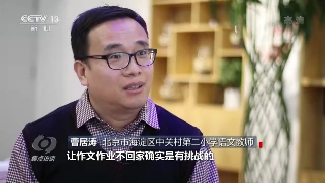 北京市海淀區(qū)中關(guān)村第二小學(xué)語文教師曹居濤說:“比如說高年級的作文,讓作文作業(yè)不回家確實是有挑戰(zhàn)的,所以我們就對教與學(xué)的方式進行了大膽的嘗試和改變。從習(xí)作布置的時間上進行了改變,叫任務(wù)前置。孩子學(xué)習(xí)單元之初,要了解這一單元當中的習(xí)作主題是什么,讓孩子的習(xí)作和生活建立聯(lián)系。”