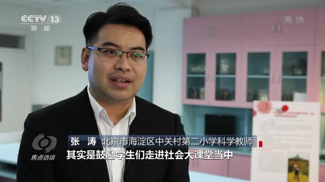 北京市海淀區(qū)中關(guān)村第二小學(xué)科學(xué)教師張濤說:“在這個過程當中,其實是鼓勵學(xué)生們走進社會大課堂當中,去發(fā)現(xiàn)生活中的一些科學(xué)問題,收集一手資料,去解決科學(xué)問題。”