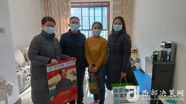 西部決策網(wǎng)訊(韓宗憲 通訊員 楊盼 盧智剛)1月14日、15日,寶雞市鳳翔區(qū)醫(yī)院黨總支書(shū)記周輝帶隊(duì),工會(huì)主席兼院黨總支副書(shū)記田恩倉(cāng)、副院長(zhǎng)張召平、王曉輝、劉蘭、吳建偉等院領(lǐng)導(dǎo)班子成員分五組走訪慰問(wèn)了全院支援西安疫情防控人員家屬、隔離病區(qū)及集中醫(yī)學(xué)觀察點(diǎn)工作人員家屬,為他們送去組織的關(guān)心與關(guān)愛(ài),并向默默支持抗疫工作的家屬們表示崇高的敬意和最衷心的感謝。