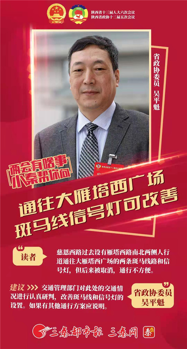 海報(bào)·建議|省政協(xié)委員吳平魁:通往大雁塔西廣場(chǎng)斑馬線(xiàn)信號(hào)燈可改善