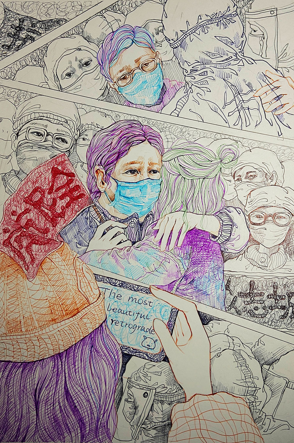 2021年12月,新冠肺炎疫情在西安突然暴發(fā),面對突如其來的疫情和嚴(yán)峻復(fù)雜的防控形勢,在加強(qiáng)落實疫情防控、保障師生健康的同時,西安工程大學(xué)服裝與藝術(shù)設(shè)計學(xué)院積極應(yīng)對,組織全院師生有序、規(guī)范開啟2021年秋季期末課程結(jié)課的線上教學(xué)。任課教師及時調(diào)整結(jié)課作業(yè)主題,充分利用視覺傳達(dá)設(shè)計專業(yè)特點,組織同學(xué)們嚴(yán)謹(jǐn)認(rèn)真、激情飽滿地用畫筆以藝抗疫,致敬最美逆行者!