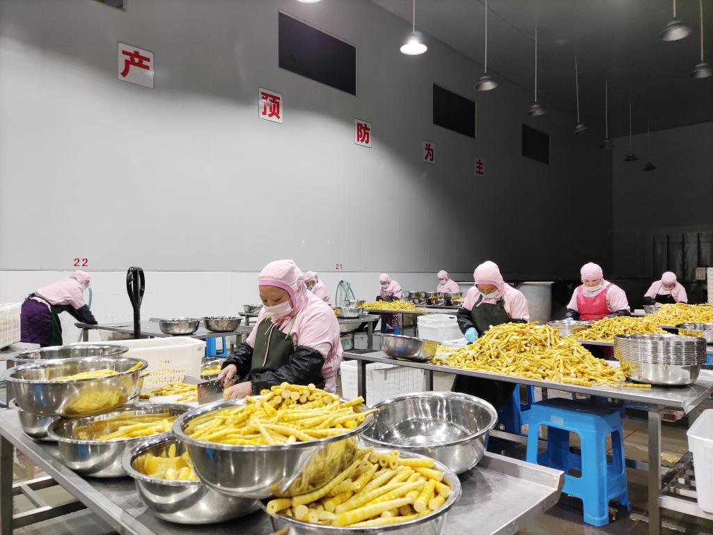 38歲的村民陳麗在廠里負(fù)責(zé)切筍花,月收入4000元,她家還種了20畝竹子。工廠負(fù)責(zé)人余芳明說,100余名員工大多是脫貧群眾,工廠還通過收筍帶動(dòng)6000余戶農(nóng)戶增收。