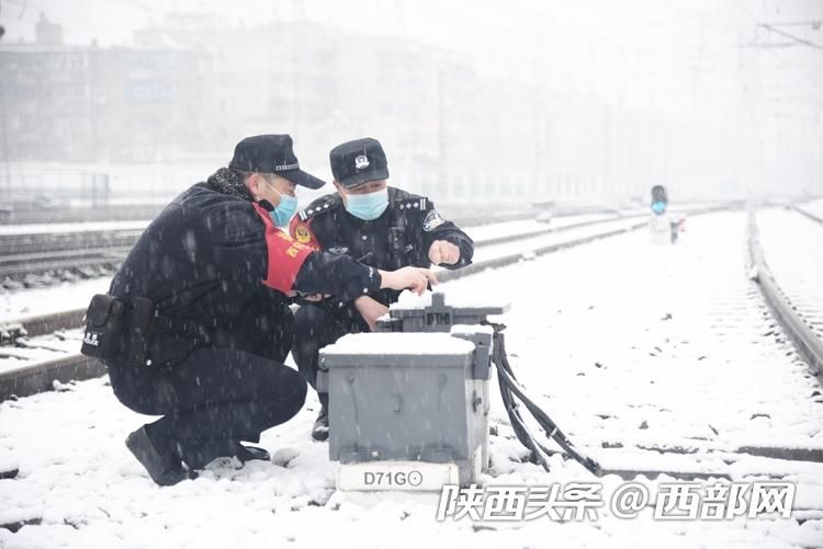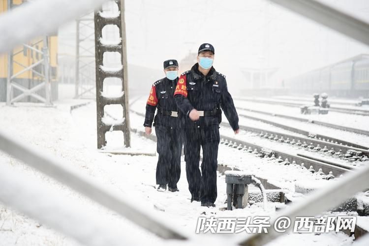西部網(wǎng)訊(記者 馬晴茹 通訊員 張鑫 田甜) 1月27日,陜西省寶雞市迎來大范圍雨雪冰凍天氣,恰逢春運(yùn)出行高峰,西安鐵路公安處寶雞站派出所民警頂風(fēng)冒雪,排查行車設(shè)備、重點(diǎn)部位的治安安全隱患,全力確保雪天鐵路運(yùn)輸安全暢通,旅客出行平安。