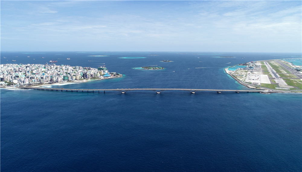 這是2019年8月30日在馬爾代夫航拍的連接首都馬累和機場島的中馬友誼大橋。新華社發(fā)(王明亮攝)