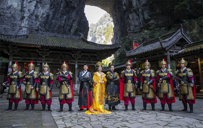 “女王駕到”“恭迎女王陛下”“諸位請(qǐng)起,游玩到此,觀景甚美,諸位與我,共享此景。”在天生三橋景區(qū)天福官驛客棧,一群身形魁梧的帶刀侍衛(wèi),整齊的站在驛站門(mén)口兩側(cè)恭迎每位入園的“女王”?,F(xiàn)場(chǎng)儀式感爆棚,一身金黃的“女王”霸氣外露。驛站內(nèi)熱鬧的氛圍吸引了眾多游客參與,有的上前與侍衛(wèi)互動(dòng)拍照,有的主動(dòng)穿上“女王”服體驗(yàn)霸氣女王范,有的還主動(dòng)表演起了電影里女王翻牌的有趣橋段。“今天我最大,這樣過(guò)節(jié)著實(shí)過(guò)癮”玩得正起勁的劉女士表示,這是她過(guò)得最好玩、最具儀式感的女王節(jié)。