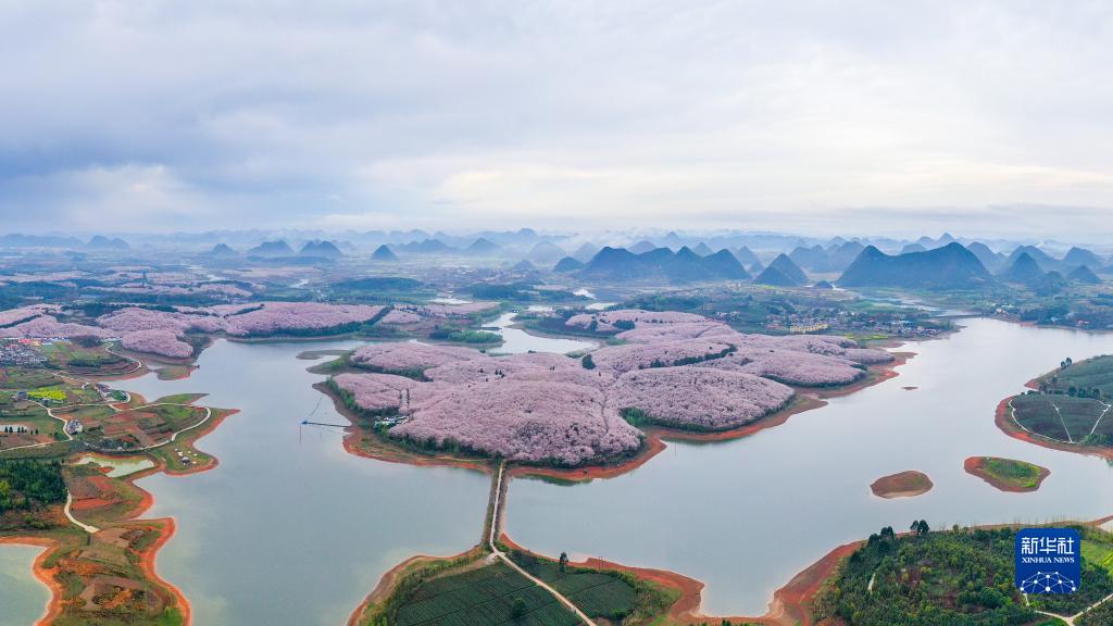 這是3月17日拍攝的貴安新區(qū)櫻花園(無人機(jī)照片)?!⌒氯A社記者 歐東衢 攝