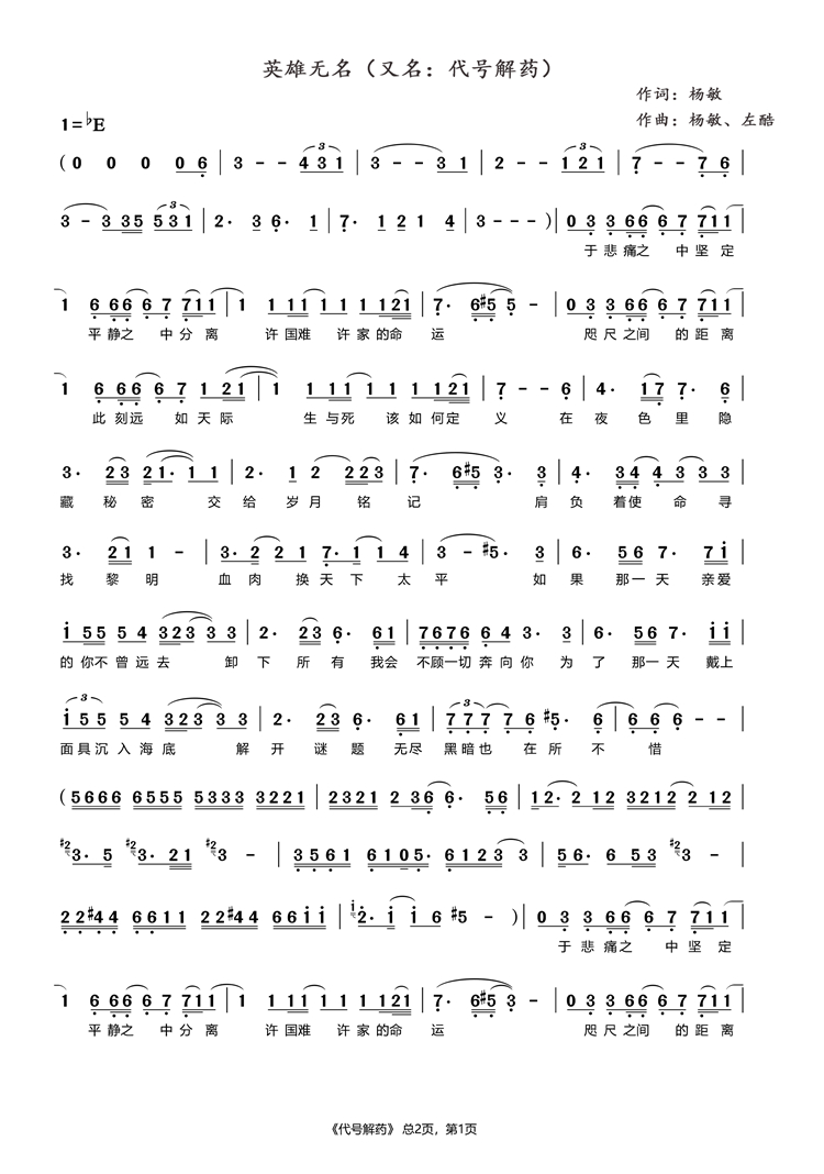 慶祝建黨百年獲獎(jiǎng)歌曲作品選集——《英雄無(wú)名》歌詞。