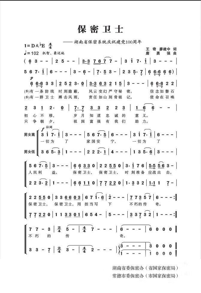 慶祝建黨百年獲獎歌曲作品選集——《保密衛(wèi)士》音頻。