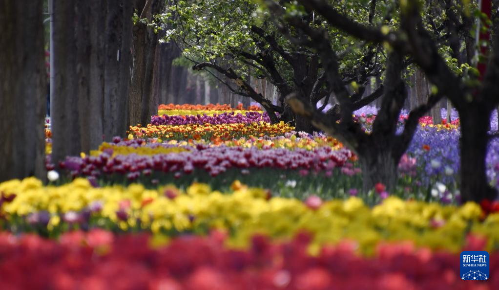 大興區(qū)北臧村鎮(zhèn)永定河畔的綠色港灣內(nèi)盛開的郁金香(4月19日攝)。