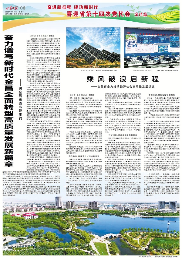 近幾年,克服新冠肺炎疫情不利影響,金昌經(jīng)濟(jì)逆勢上揚(yáng),交出高質(zhì)量答卷,體現(xiàn)出超強(qiáng)韌性。王鈞介紹:“2021年,全市地區(qū)生產(chǎn)總值達(dá)到428.6億元、五年累計(jì)增長42.9%,一般公共預(yù)算收入達(dá)到26.98億元、累計(jì)增長30.1%,城鄉(xiāng)居民人均可支配收入分別達(dá)到45649元和18500元、累計(jì)增長42.2%和50.4%,金川集團(tuán)躍居世界500強(qiáng)第336位,金昌經(jīng)濟(jì)開發(fā)區(qū)位列全國217個(gè)國家級經(jīng)濟(jì)開發(fā)區(qū)第78位、區(qū)域帶動(dòng)單項(xiàng)指標(biāo)全國第三。同時(shí),我們高質(zhì)量打贏脫貧攻堅(jiān)戰(zhàn),全面建成小康社會(huì),第三次榮獲全國文明城市稱號,金昌已經(jīng)步入全面轉(zhuǎn)型高質(zhì)量發(fā)展的新階段。”