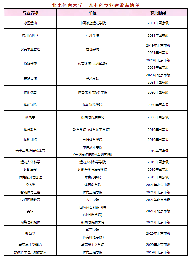 近日,教育部辦公廳公布了2021年度國家級和省級一流本科專業(yè)建設點名單。北京體育大學冰雪運動、應用心理學、公共事業(yè)管理、旅游管理、舞蹈表演5個專業(yè)獲批國家級一流本科專業(yè)建設點,經濟學、智能體育工程、漢語國際教育、英語、網絡與新媒體5個專業(yè)獲批北京市級一流本科專業(yè)建設點。自2019年教育部實施一流本科專業(yè)建設“雙萬計劃”以來,學校共獲批一流本科專業(yè)建設點22個,其中國家級14個、北京市級8個,在2022年本科招生專業(yè)中一流專業(yè)建設點已覆蓋75%以上,今年錄取的本科新生中將有超過90%的同學進入國家級、省級一流專業(yè)建設點學習。
