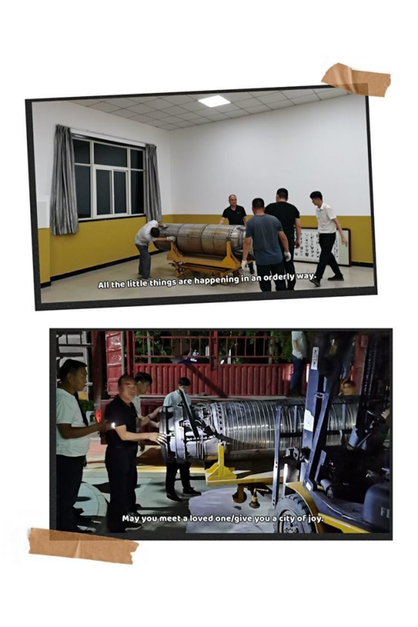 卸完設(shè)備已經(jīng)夜里十一點(diǎn)多,董事長仍堅(jiān)持在一線指導(dǎo),廢寢忘食,不辭勞苦,看著新進(jìn)的設(shè)備,董事長如獲至寶,既欣慰又激動。