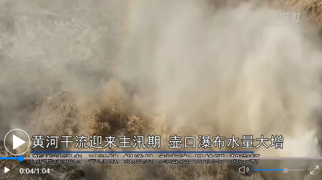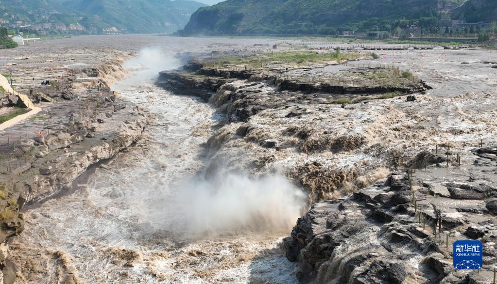 受近期上游降雨增多和萬家寨水庫(kù)調(diào)節(jié)放水影響,黃河干流進(jìn)入主汛期,位于晉陜兩省交界的黃河壺口瀑布水量大增。