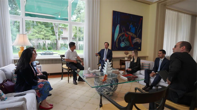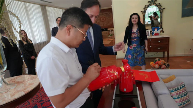 陜西西鳳酒股份有限公司副總經(jīng)理高洪濤一行在葡萄牙駐華大使官邸交流現(xiàn)場