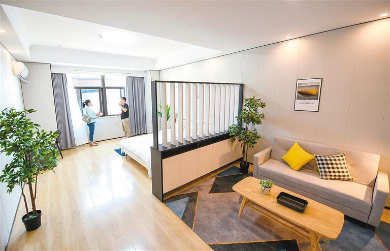 簡單介紹后,工作人員帶著劉女士參觀了位于6樓的樣板間。“真寬敞夠亮堂!”房門打開的一瞬間,劉女士忍不住感嘆道。這套房源有70多平方米,裝修簡約時尚、充滿年輕氣息,洗衣機(jī)、冰箱、空調(diào)等設(shè)施一應(yīng)俱全,家具陳列干凈整潔。“真沒想到條件這么好,房間內(nèi)的裝修和家具都是我喜歡的樣子。尤其是房間里有獨(dú)立的衛(wèi)浴,住起來會很方便。”劉女士說,自己對房源很滿意。參觀結(jié)束后,劉女士立即向工作人員詳細(xì)詢問租住流程。