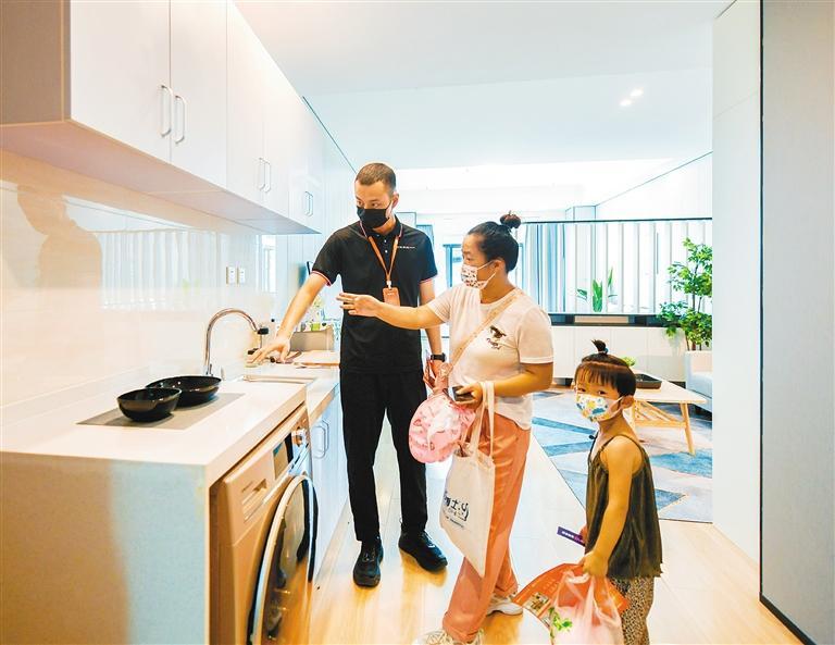 來自甘肅的潘先生,家里有個24歲的女兒,剛剛工作才兩年,一直都是租房住,安全問題是他最擔(dān)心的。聽說這里的保障性租賃住房是政府項(xiàng)目,跟市面上的租賃住房相比,這里的房租更低,質(zhì)量上也更有保障,潘先生很感興趣,在看過樣板間后,讓女兒盡快拎包入住的想法更加強(qiáng)烈。“這里房間干凈整潔、安全性好,全天都有保安值守,孩子住這我心里很踏實(shí)。”潘先生說。