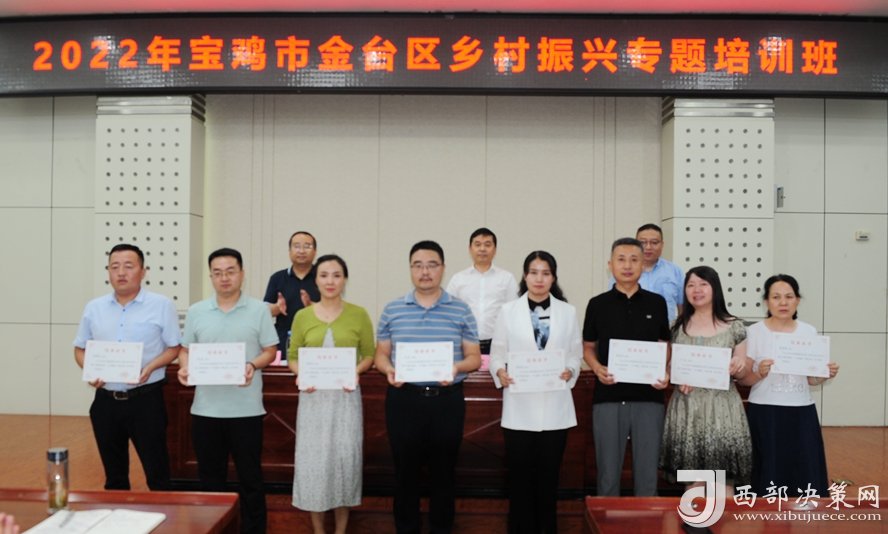 西部決策網(wǎng)訊 8月6日下午,為期三天的“2022年寶雞市金臺區(qū)鄉(xiāng)村振興專題培訓(xùn)班”結(jié)束了!60余學(xué)員順利的拿到了結(jié)業(yè)證。寶雞文理學(xué)院經(jīng)濟(jì)管理學(xué)院院長、陜西鄉(xiāng)村振興研究中心主任劉輝;金臺區(qū)政府副區(qū)長郭小軍出席了結(jié)業(yè)儀式。參加結(jié)業(yè)儀式的還有金臺區(qū)鄉(xiāng)村振興局主要負(fù)責(zé)人、分管領(lǐng)導(dǎo),各鎮(zhèn)涉農(nóng)街道黨(工)委書記和鄉(xiāng)村振興工作分管領(lǐng)導(dǎo),區(qū)委實施鄉(xiāng)村振興戰(zhàn)略領(lǐng)導(dǎo)小組和區(qū)委抓黨建促鄉(xiāng)村振興領(lǐng)導(dǎo)小組各成員單位分管領(lǐng)導(dǎo)。結(jié)業(yè)儀式由金臺區(qū)鄉(xiāng)村振興局局長鄭偉平主持。