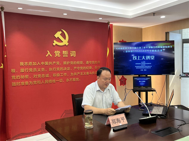 8月12日上午,陜西省建設工程質(zhì)量安全監(jiān)督總站黨支部堅持以黨建引領安全方面各項工作,組織開展《危險性較大的分部分項工程專項施工方案編制指南》線上講座。此次講座邀請了杭州品茗安控信息技術股份有限公司專家講師鄧文梓教授做詳細培訓,陜西省各級質(zhì)量安全監(jiān)督機構分別在各分會場通過視頻直播的方式相聚云端。各施工單位、監(jiān)理單位及在建項目的安全管理人員、技術負責人等共計一萬余人參與學習。