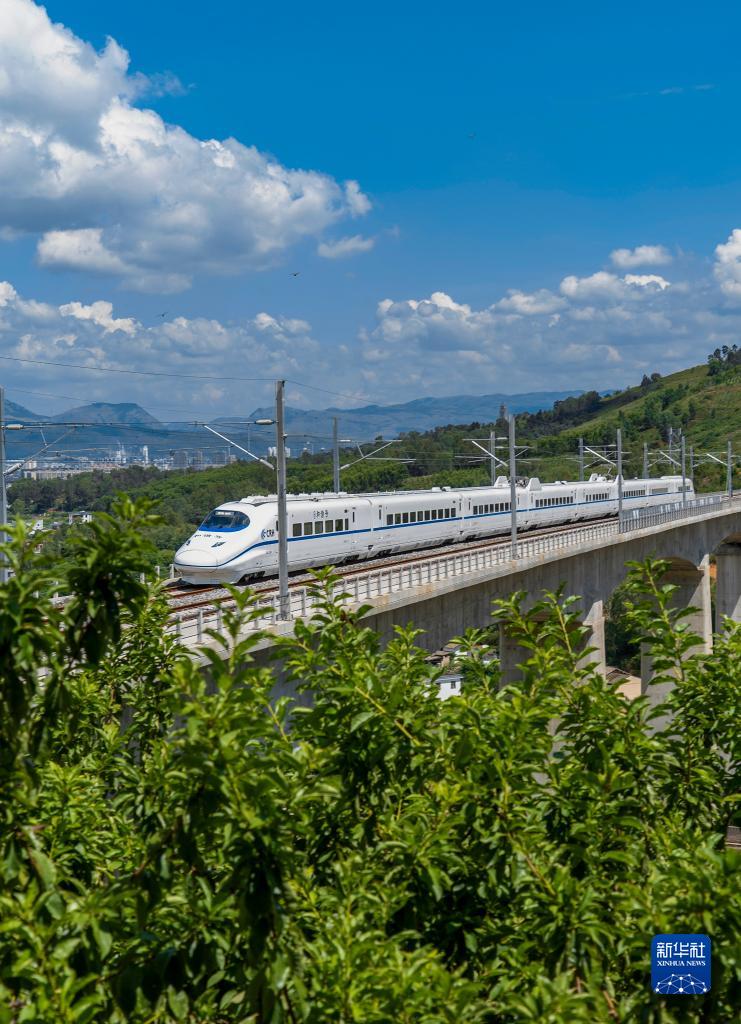 8月23日,綜合檢測車通過彌蒙高鐵南洞3號特大橋。新華社發(fā)(吳宇 攝)