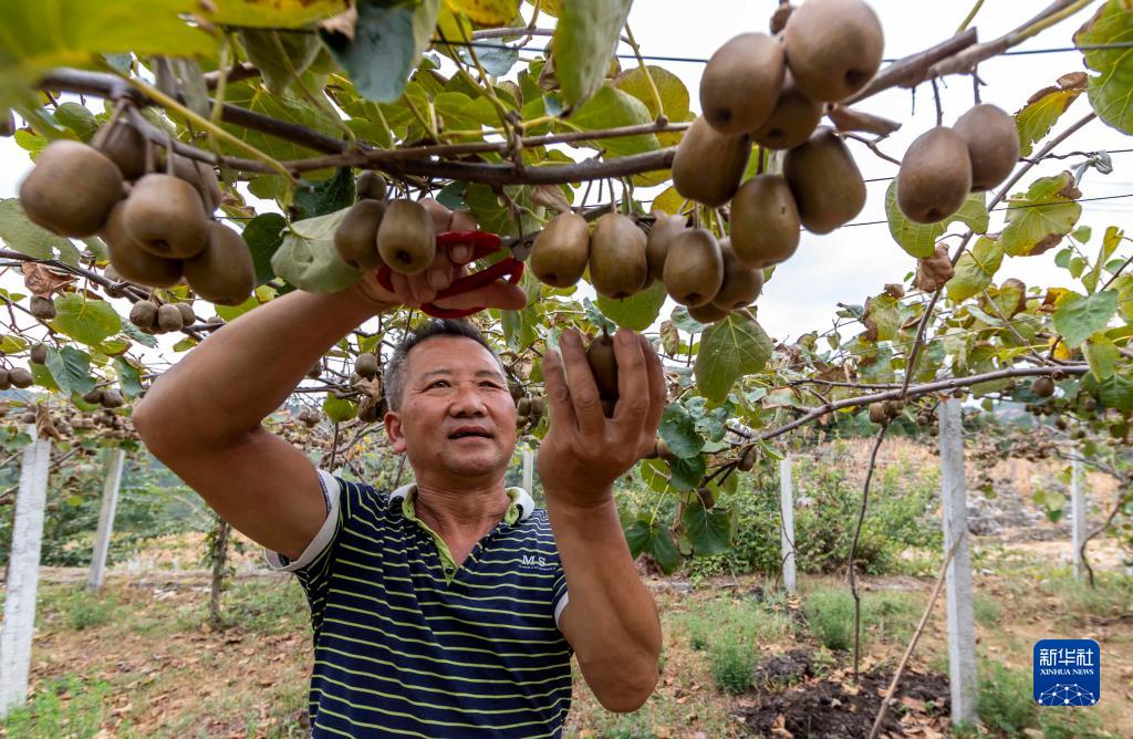 9月1日,村民在貴州省黔西市定新鄉(xiāng)青杠村采收獼猴桃。新華社發(fā)(范暉 攝)