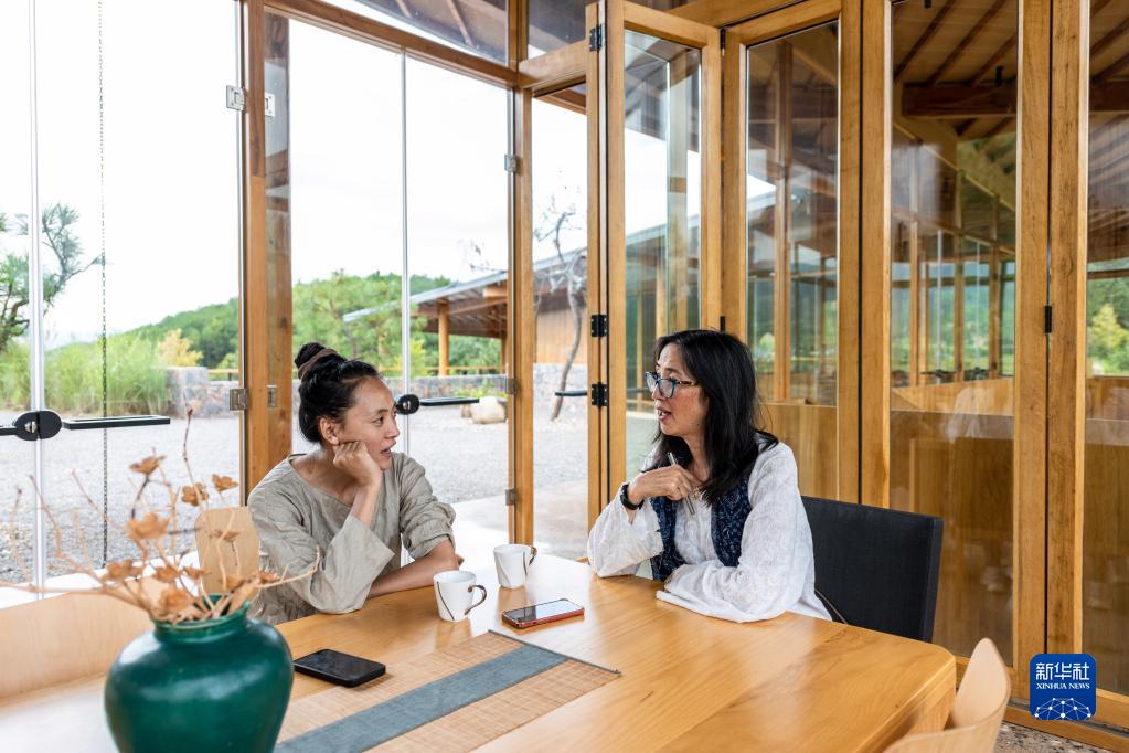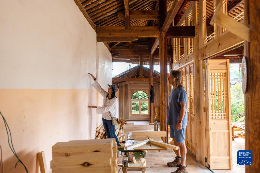 8月31日,林登和妻子瑾妮在沙溪鎮(zhèn)石龍村討論鄉(xiāng)村圖書館的設計。新華社記者 曹夢瑤 攝
