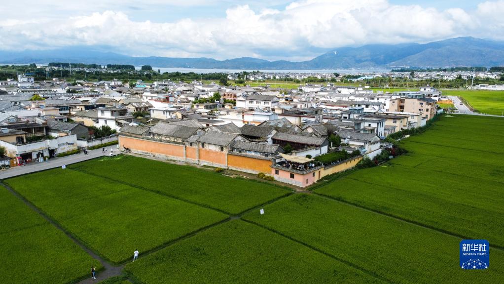 這是8月27日拍攝的云南省喜洲古鎮(zhèn),近處為喜林苑(無人機照片)。新華社記者 曹夢瑤 攝