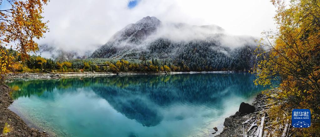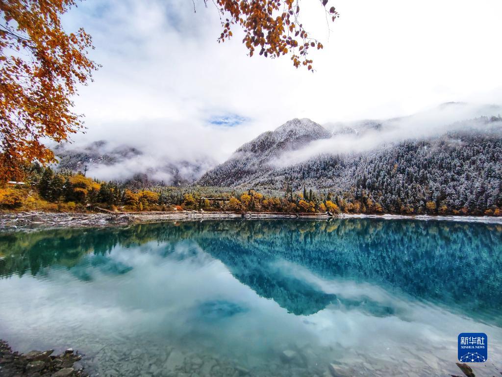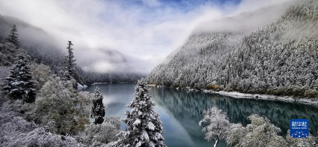 這是10月7日在世界自然遺產(chǎn)地九寨溝拍攝的雪后景色。新華社發(fā)(梁楓 攝)