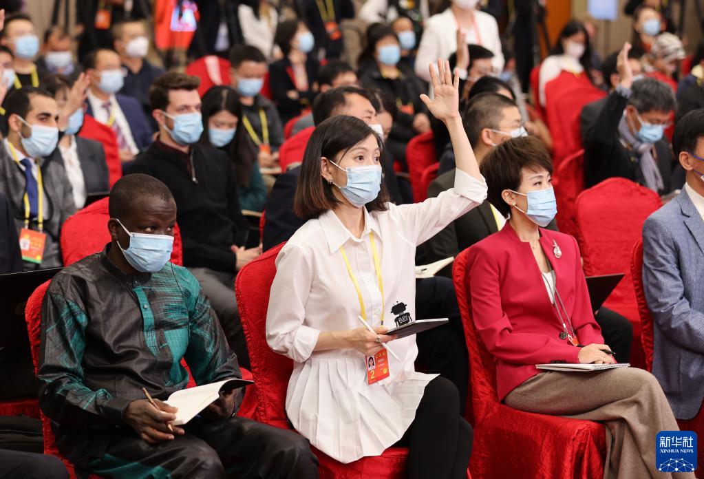 這是記者在分會(huì)場(chǎng)舉手提問。新華社記者 殷剛 攝