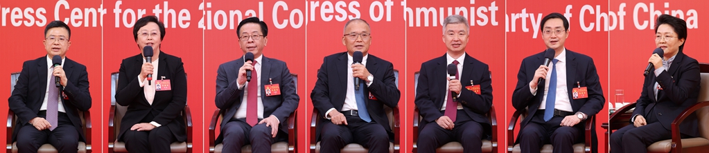 10月19日,中國(guó)共產(chǎn)黨第二十次全國(guó)代表大會(huì)新聞中心舉行集體采訪。重慶、四川、貴州、云南、西藏、陜西、甘肅代表團(tuán)新聞發(fā)言人出席,介紹代表團(tuán)學(xué)習(xí)討論二十大報(bào)告情況,并回答記者提問(拼版照片)。新華社記者 張玉薇 攝