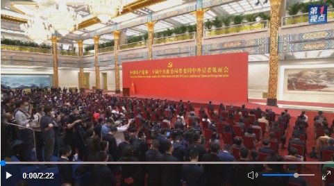 剛剛在中國共產(chǎn)黨第二十屆中央委員會第一次全體會議上當(dāng)選的中共中央總書記習(xí)近平和中共中央政治局常委李強、趙樂際、王滬寧、蔡奇、丁薛祥、李希,23日中午在人民大會堂同采訪中共二十大的中外記者親切見面。