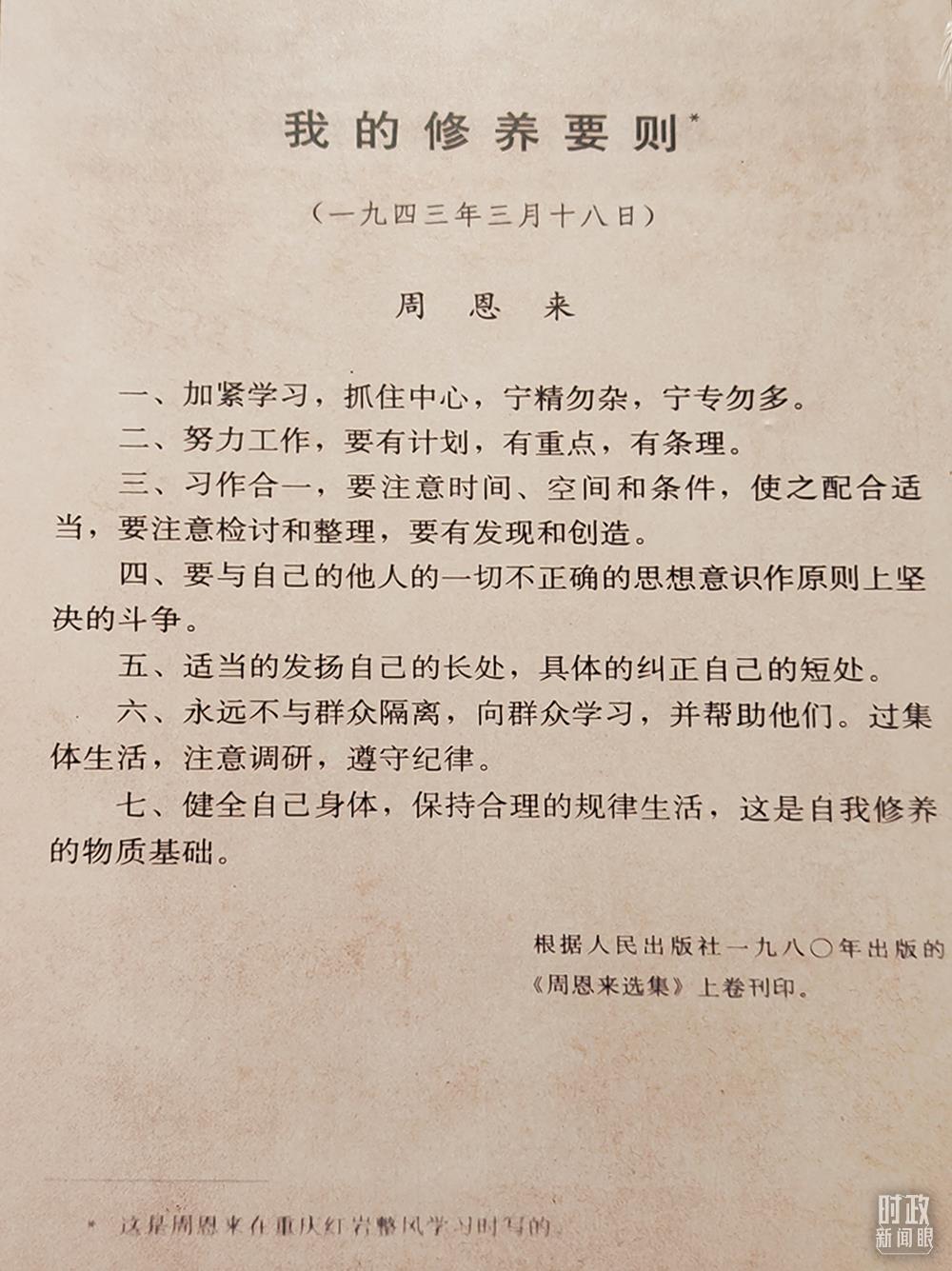 △周恩來(lái)所寫《我的修養(yǎng)要?jiǎng)t》。(總臺(tái)央視記者彭漢明拍攝)