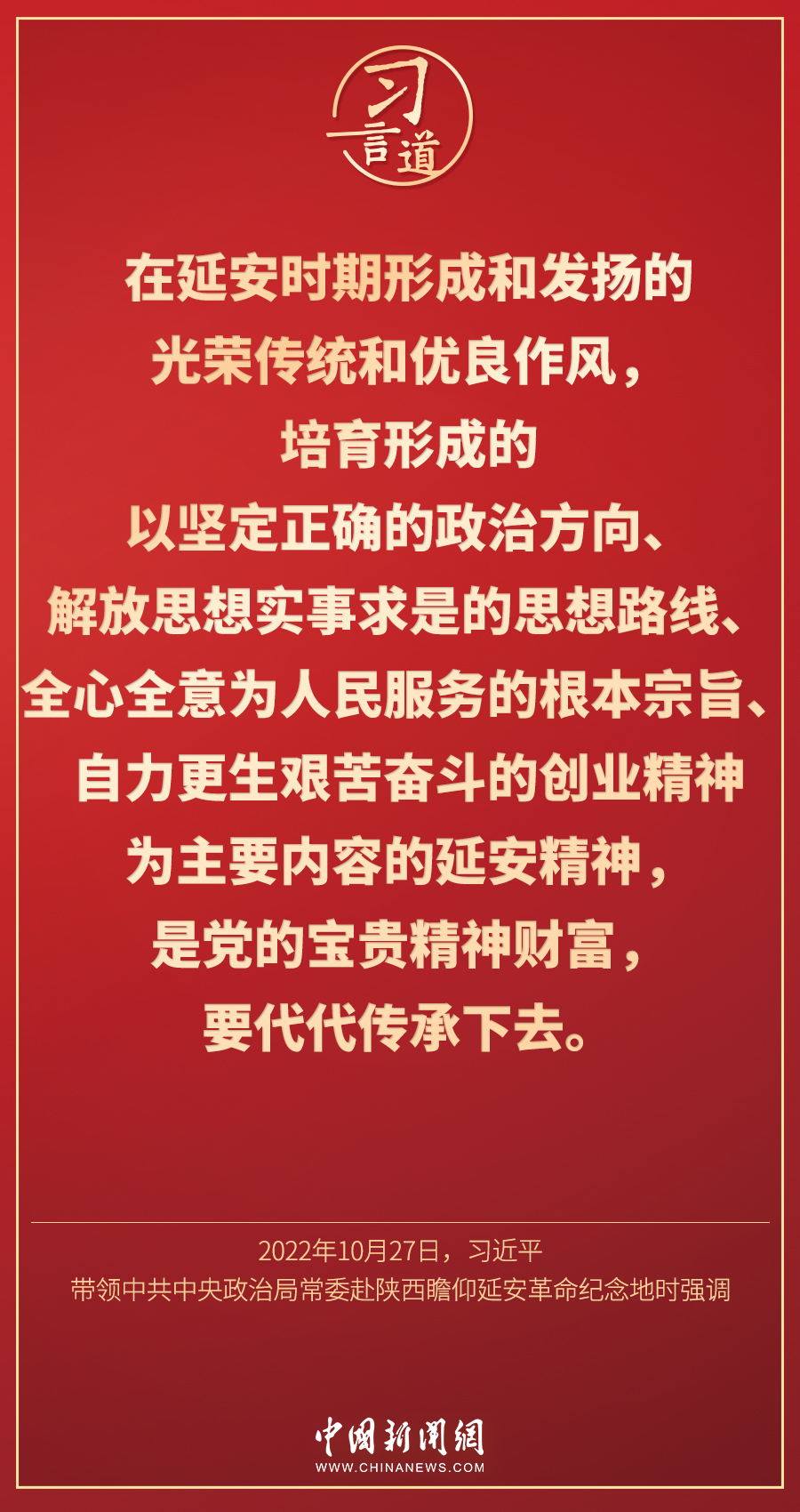黨的二十大閉幕不到一周,中共中央總書記、國(guó)家主席、中央軍委主席習(xí)近平帶領(lǐng)中共中央政治局常委李強(qiáng)、趙樂際、王滬寧、蔡奇、丁薛祥、李希,專程從北京前往陜西延安,瞻仰延安革命紀(jì)念地。此行中,習(xí)近平多次談到延安精神——
