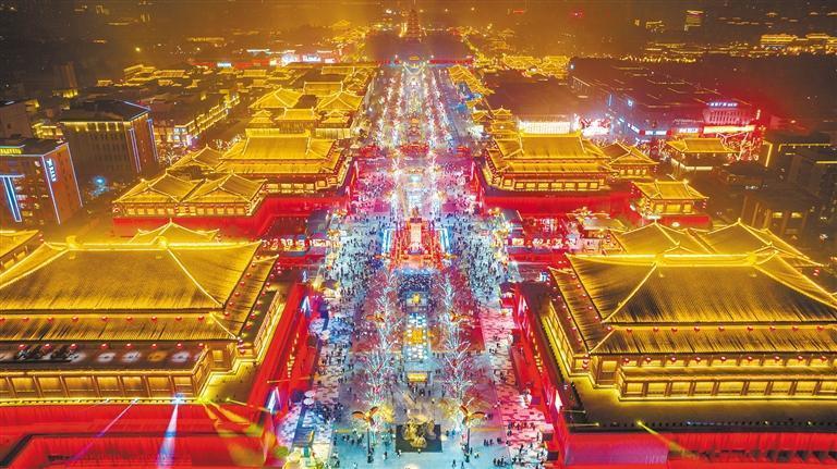 1月2日,游客在西安大唐不夜城步行街游玩。元旦假期,不少群眾選擇出游迎新,與親朋好友歡度佳節(jié)。記者 趙晨攝