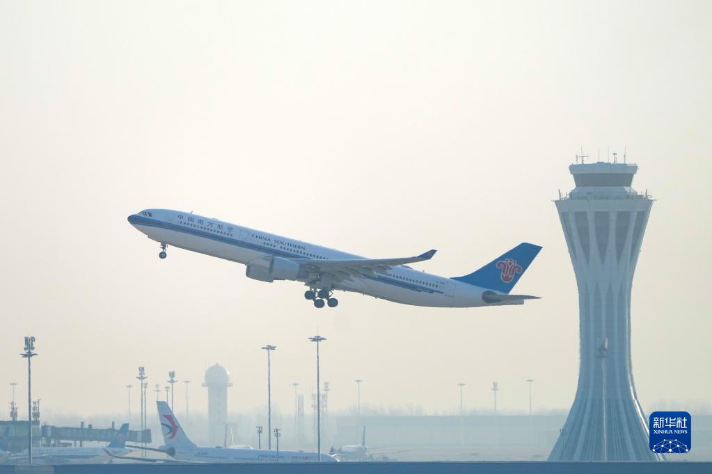 1月17日,從北京大興飛往香港的南航CZ309次出境航班起飛。新華社記者 鞠煥宗 攝