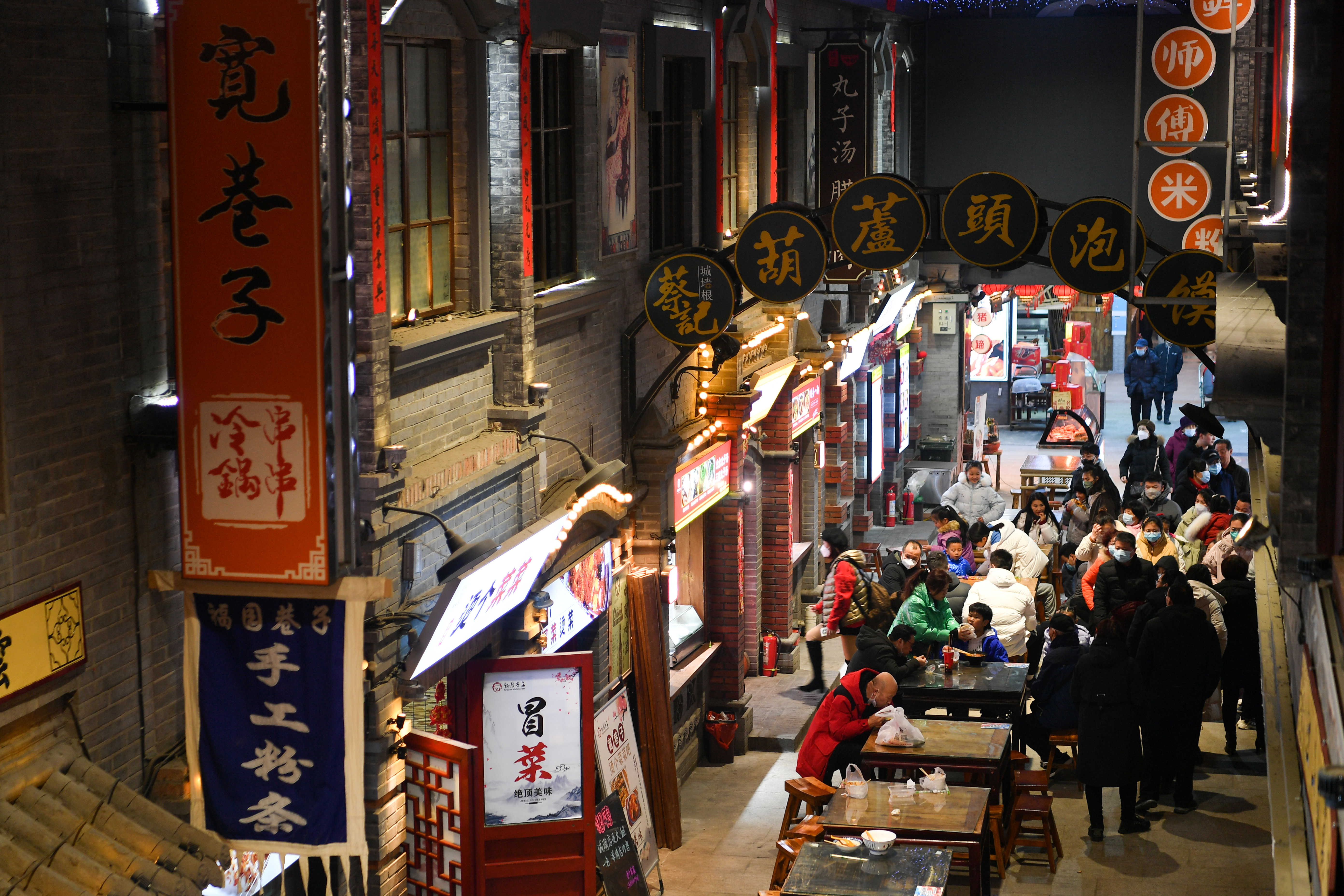 1月24日,市民在位于陜西省咸陽(yáng)市的福園巷子街區(qū)游覽,品味特色美食。新華社記者 張博文 攝