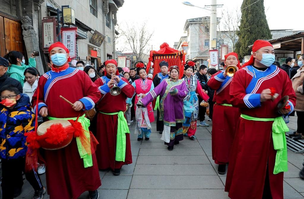 1月23日大年初二12:06,首批乘坐“韓城過(guò)大年”定制列車的400多名游客抵達(dá)韓城,走進(jìn)史圣故里,感受古城悠久的文化底蘊(yùn)和不一樣的韓城年味。游客們沿著新開(kāi)辟的“古城環(huán)線游”線路,依次游覽古城三廟、民俗博物館,欣賞非遺展覽,在古城美食街品嘗當(dāng)?shù)孛朗?。行走在古城,社火、秧歌、踩高蹺…… 各色非遺表演精彩紛呈,游客們紛紛拿出手機(jī)留下精彩的瞬間,抱起孩子共享這難得的歡樂(lè)時(shí)光,體驗(yàn)這里濃濃的年味。