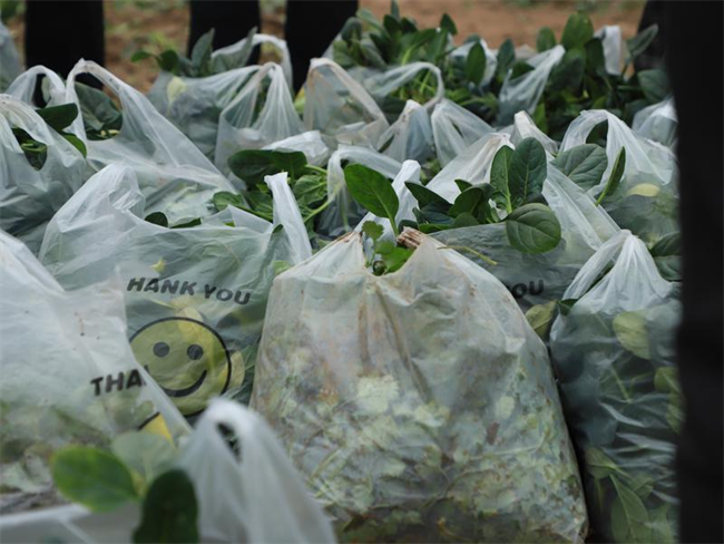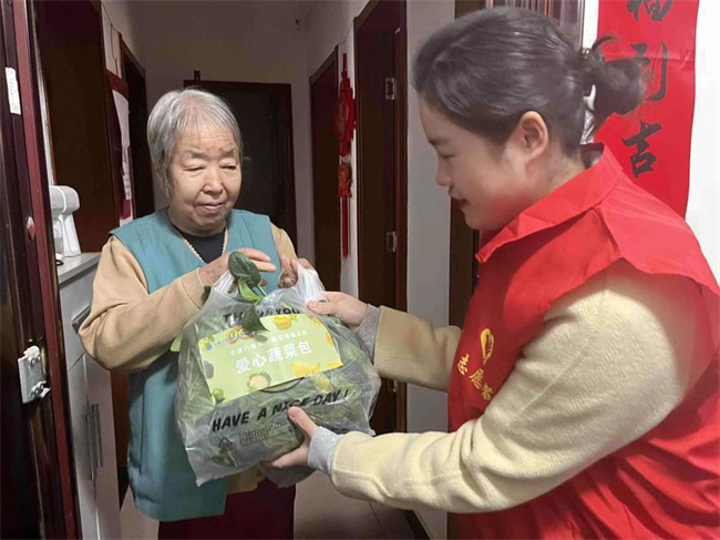 志愿者們來到田間助農(nóng)采摘菠菜和香菜,大家齊心協(xié)力、干勁十足,不一會兒一批新鮮蔬菜便裝袋完成。隨后志愿者們將“愛心蔬菜包”送往翠華南路社區(qū)困難老人手中,以實際行動傳遞愛心,踐行央企責任。