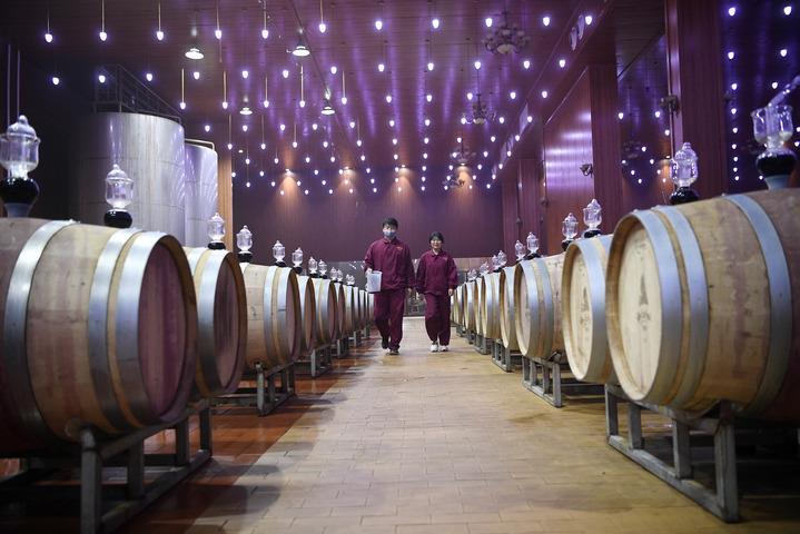 風(fēng)從賀蘭山深處吹來,拂過山腳下一眼難望到頭的葡萄園。一座占地面積達(dá)5000平方米的酒窖里,自動化設(shè)備保持四季恒溫恒濕,2000個(gè)橡木桶鱗次櫛比,國際葡萄酒大賽獲獎證書一個(gè)挨著一個(gè),擺滿了十幾米長的陳列架。