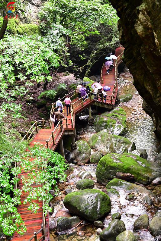 景區(qū)內(nèi),奇險(xiǎn)峽谷,清流飛澗,匯聚了山水靈秀之美。蒼郁古樹,山泉婉轉(zhuǎn),鬼斧神工的波光水色,如詩(shī)如畫的景致讓游客流連忘返。