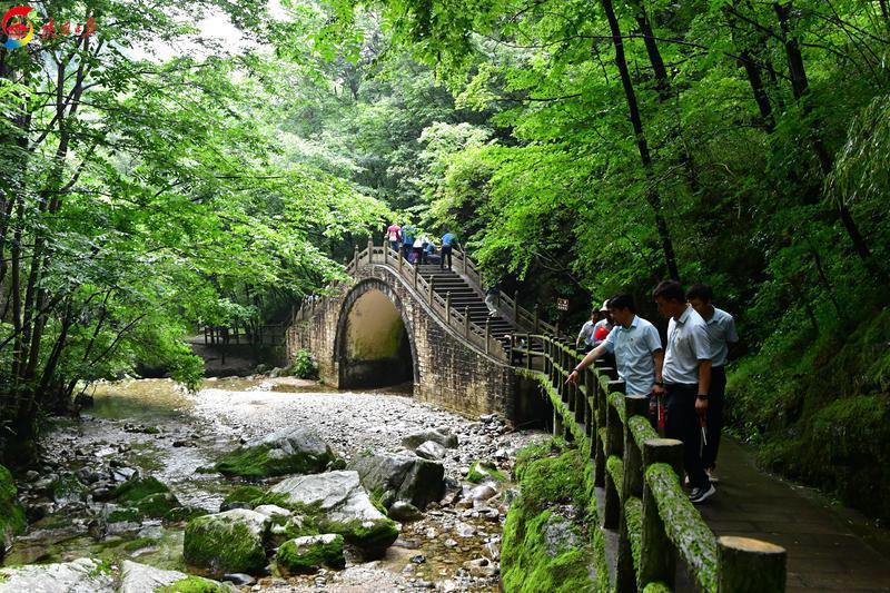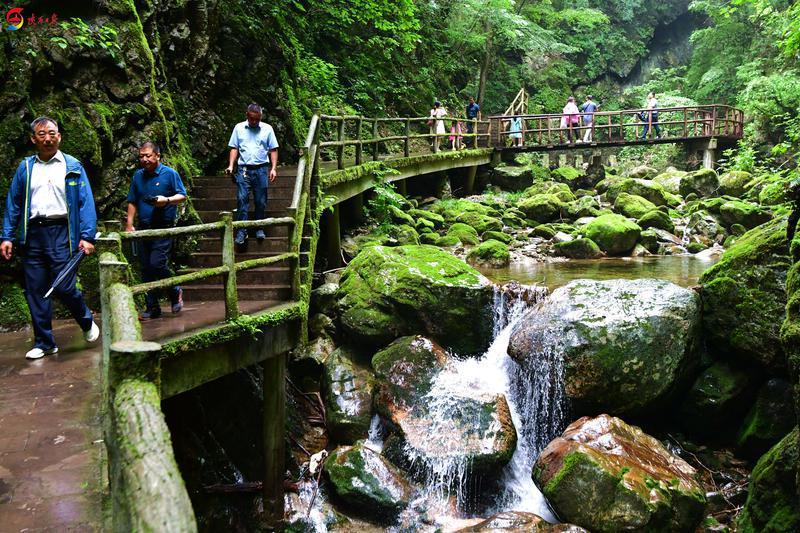 6月28日,位于商洛市柞水縣的牛背梁國(guó)家森林公園景區(qū)內(nèi)游人如織。這里山色青翠,溪水潺潺,行道兩旁景色宜人。
