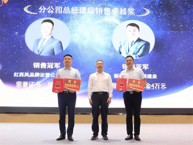 郭拴新為銷售卓越獎(jiǎng)獲得者頒發(fā)榮譽(yù)證書(shū)與獎(jiǎng)金