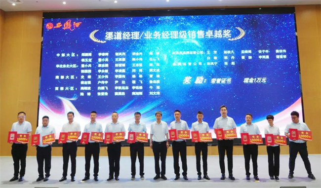 西鳳股份公司財(cái)務(wù)管理部部長(zhǎng)陳宏利為業(yè)務(wù)經(jīng)理銷售卓越獎(jiǎng)獲得者頒發(fā)榮譽(yù)證書(shū)與獎(jiǎng)金