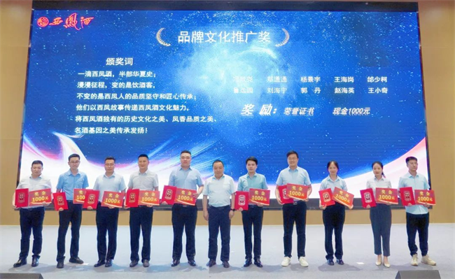 西鳳股份公司品牌管理部部長(zhǎng)姜承輝為品牌文化推廣獎(jiǎng)獲得者頒發(fā)榮譽(yù)證書(shū)與獎(jiǎng)金