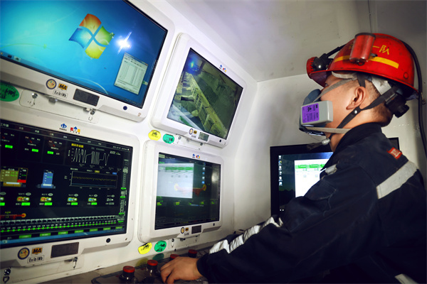 陜煤小保當(dāng)?shù)V業(yè)公司集控工在遠(yuǎn)程操作智能超長工作面運(yùn)行