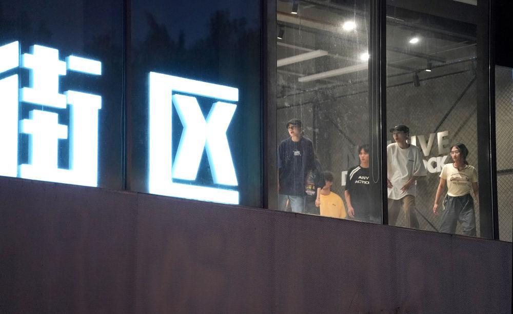 7月30日,年輕人在西安市一商業(yè)街區(qū)的舞蹈俱樂部中練習。新華社記者 邵瑞 攝