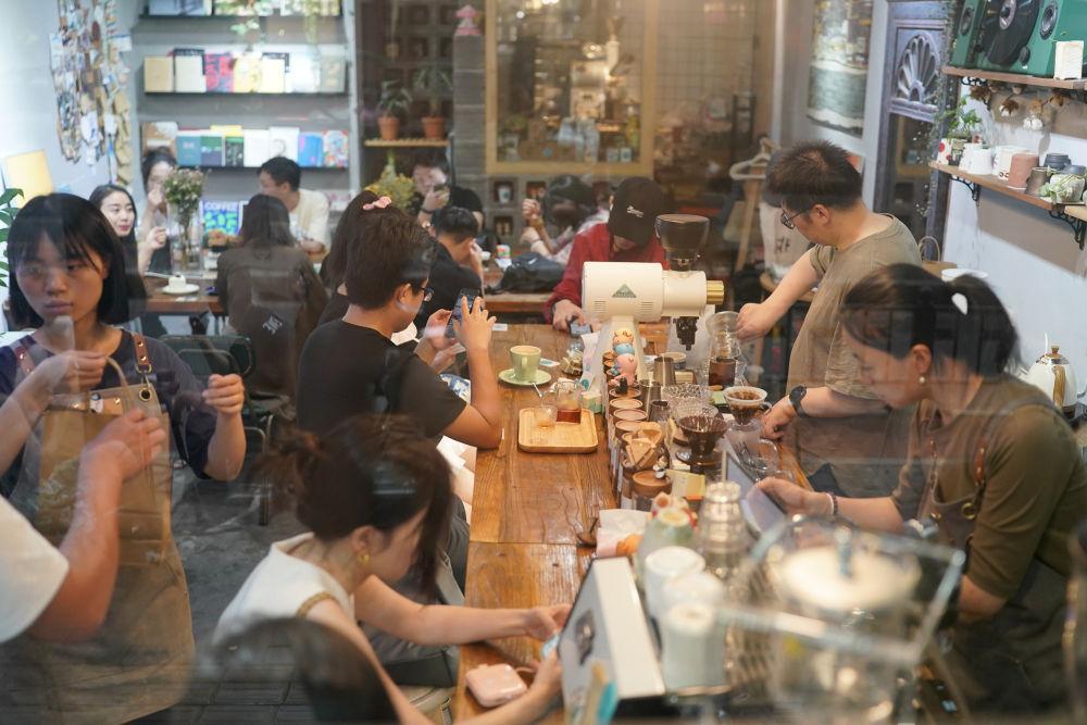 7月29日,消費者在西安市一家咖啡館內(nèi)消費。新華社記者 邵瑞 攝