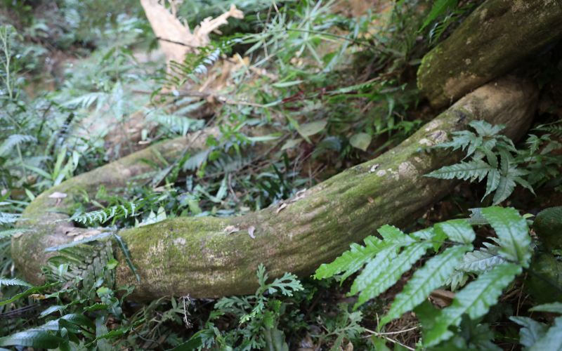 一片深山老林中,若沒有眼前這些無序的秋千般的古藤相伴,那絕不是健康完整的生態(tài)林,甚至有可能是人工經(jīng)濟(jì)林。它們,其中一部分被選擇性的保護(hù)下來,還有大量的頑強(qiáng)的競(jìng)爭(zhēng)者被選擇性淘汰,這樣的經(jīng)濟(jì)林,它天生有基因缺陷。而一個(gè)不受破壞的原始生態(tài)林中,往往能代表這片綠色的名片恰恰不是那些高顏值的高大林木,反而是長相平常的桫欏,甚至是這些相貌古怪的藤蘿,它們身上有著更遠(yuǎn)古的基因,讓我們看見亙古以前的樣子。