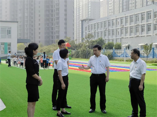 亢振峰先后深入新興幼兒園、新城七小、新城四中、西莊中學(xué),實(shí)地察看校園建設(shè)情況,聽取學(xué)校黨建工作、德育工作、師德師風(fēng)、教師隊(duì)伍建設(shè)和秋季開學(xué)、中高考綜合改革等情況匯報(bào),并與校(園)長交流,了解大家的工作生活情況,聽取對教育高質(zhì)量發(fā)展的意見建議。