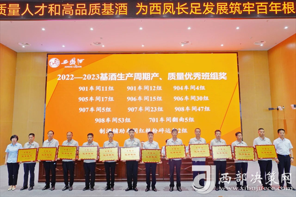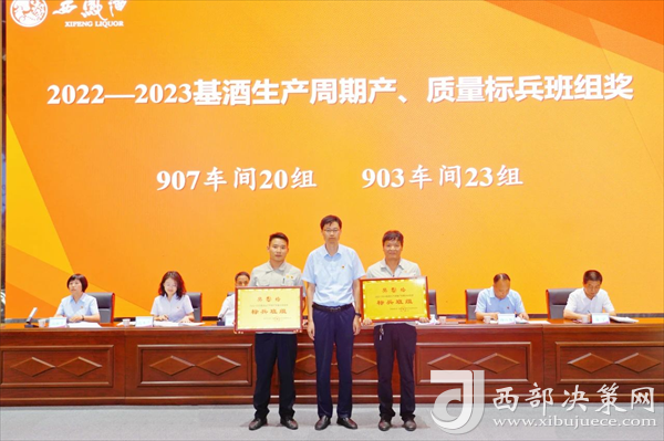 會(huì)上,張周虎宣讀了《關(guān)于對(duì)2022—2023基酒生產(chǎn)周期產(chǎn)質(zhì)量勞動(dòng)競(jìng)賽獲獎(jiǎng)車間、班組進(jìn)行表彰獎(jiǎng)勵(lì)的決定》。與會(huì)領(lǐng)導(dǎo)為受表彰的獲獎(jiǎng)車間、班組頒發(fā)獎(jiǎng)牌。