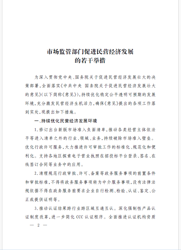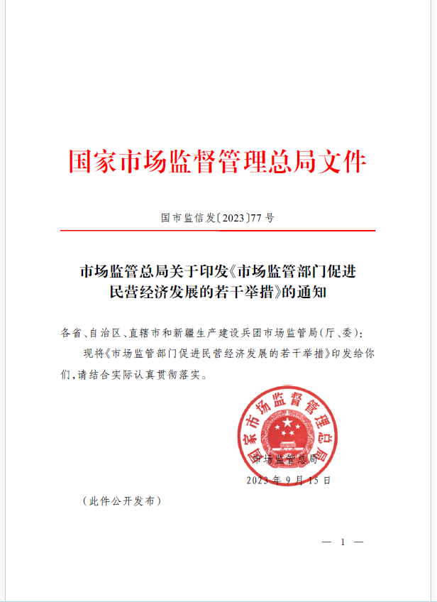 9月18日,市場(chǎng)監(jiān)管總局正式發(fā)布《市場(chǎng)監(jiān)管部門促進(jìn)民營經(jīng)濟(jì)發(fā)展的若干舉措》。這是7月14日《中共中央 國務(wù)院關(guān)于促進(jìn)民營經(jīng)濟(jì)發(fā)展壯大的意見》出臺(tái)以來,市場(chǎng)監(jiān)管部門貫徹落實(shí)黨中央、國務(wù)院決策部署出臺(tái)的制度舉措,對(duì)提振民營經(jīng)濟(jì)發(fā)展信心,依法規(guī)范和引導(dǎo)民營資本健康發(fā)展具有重要意義。